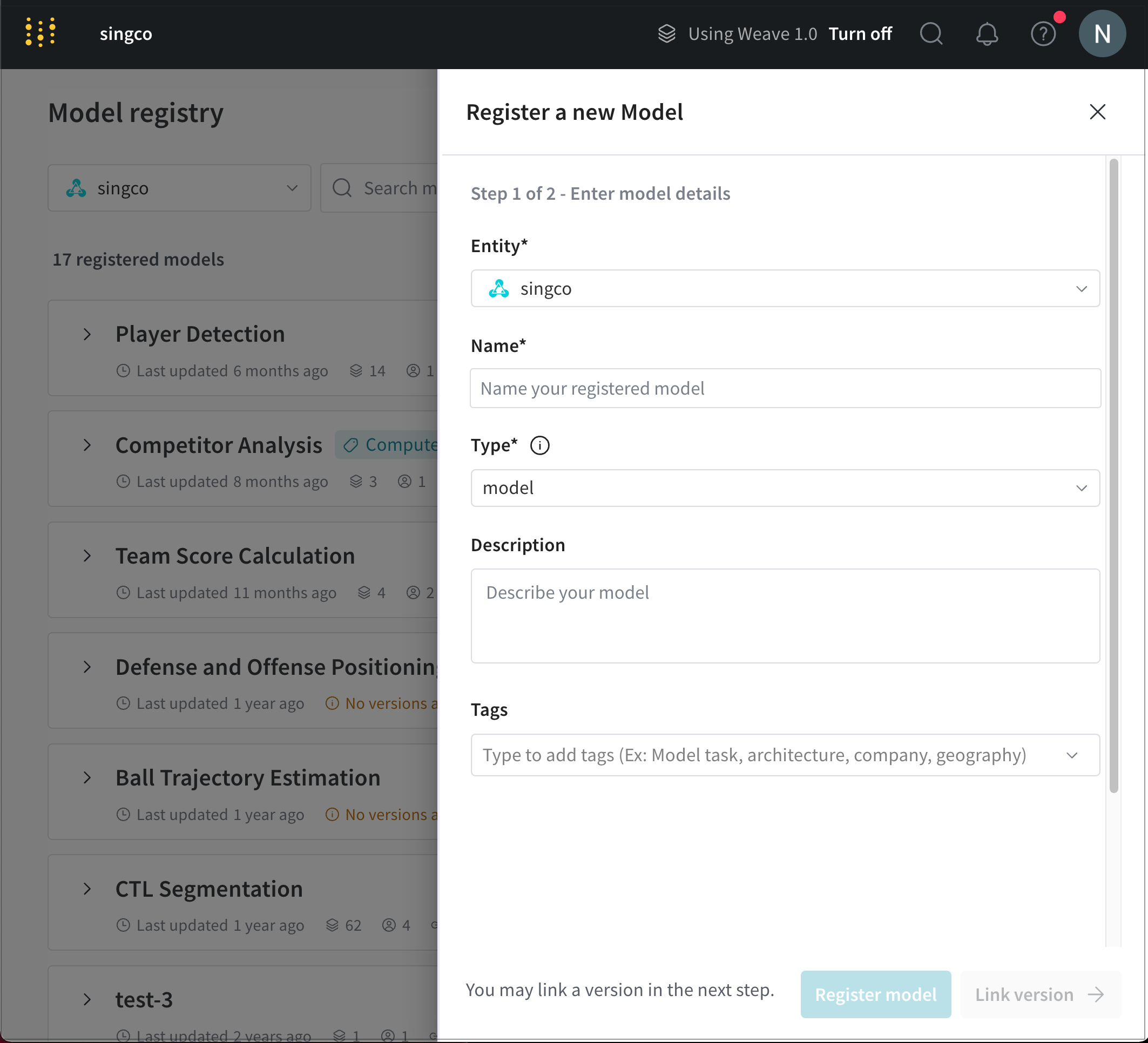 Create a registered model to hold all the candidate models for your modeling tasks. You can create a registered model interactively within the Model Registry or programmatically with the Python SDK.